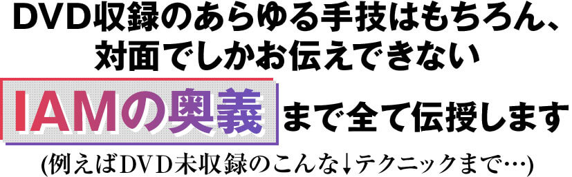 今回の6ヶ月セミナーの中では、限られたサポーターたちにのみ継承されてきたこの「IAM式タッチング技術」も惜しみなく伝授。
